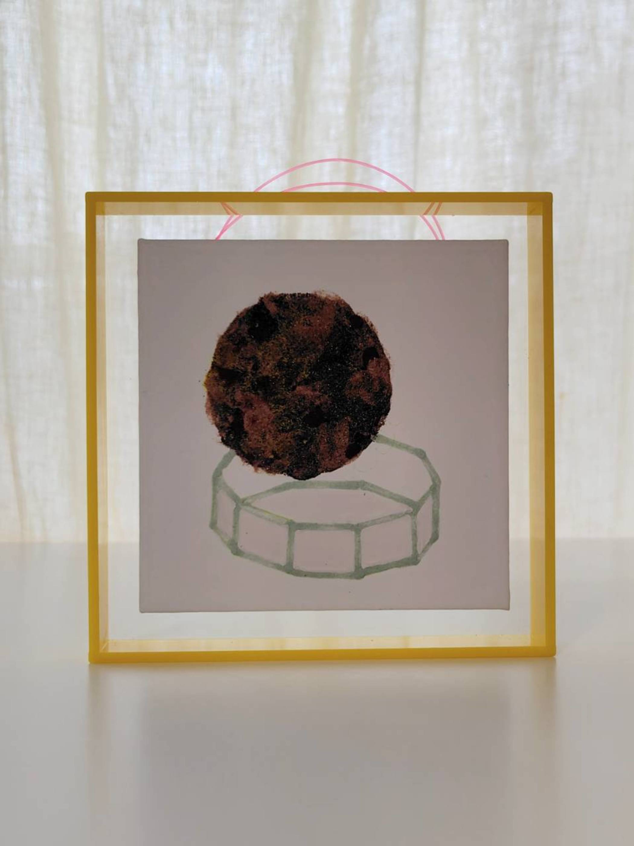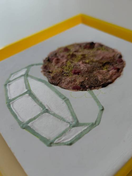 岩絵の具(ジャスパー、雲母、焼成鉄石英、ムードン白亜、和紙、木製パネル、アクリルフレーム他)