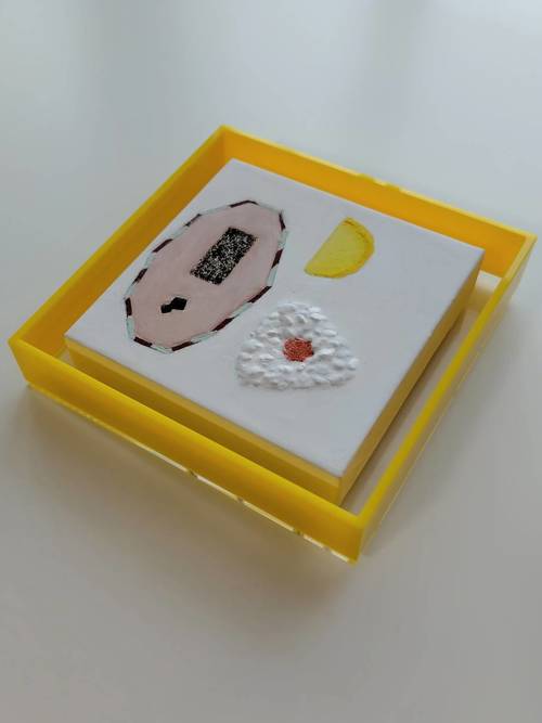 岩絵の具(水晶、黒曜石、雲母、珊瑚、ジャスパー、焼成鉄石英、トルマリン、ムードン白亜、和紙、木製パネル、アクリルフレーム他)